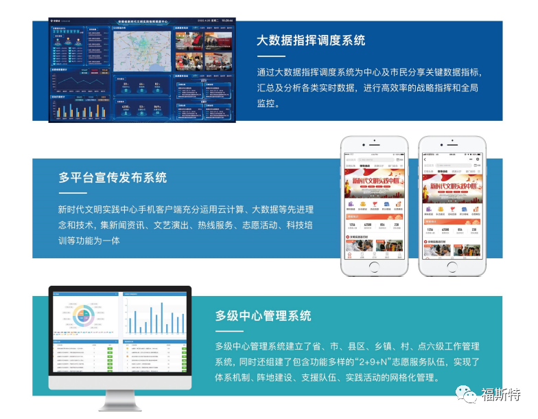 福斯特新時代文明實踐中心云平臺集服務、管理、發(fā)布、展示于一體,推動平臺、終端、和渠道互聯(lián)互通,為基層黨的理論宣講、文化建設和為民服務提質(zhì)增效,為志愿者、受益者與管理者提供了一個安全、快捷、便利、智慧化的新時代文明實踐管理工具